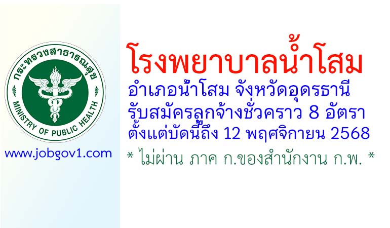 โรงพยาบาลน้ำโสม รับสมัครลูกจ้างชั่วคราว 8 อัตรา ตั้งแต่บัดนี้ถึง 12 พฤศจิกายน 2568