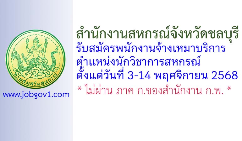 สำนักงานสหกรณ์จังหวัดชลบุรี รับสมัครพนักงานจ้างเหมาบริการ ตำแหน่งนักวิชาการสหกรณ์ ตั้งแต่วันที่ 3-14 พฤศจิกายน 2568