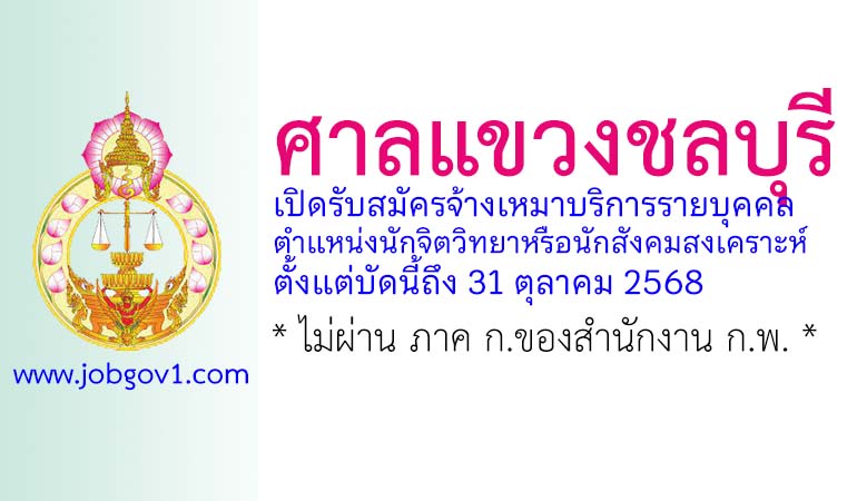 ศาลแขวงชลบุรี รับสมัครจ้างเหมาบริการรายบุคคล ตำแหน่งนักจิตวิทยาหรือนักสังคมสงเคราะห์ ตั้งแต่บัดนี้ถึง 31 ตุลาคม 2568