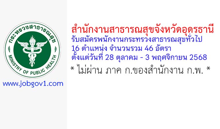 สำนักงานสาธารณสุขจังหวัดอุดรธานี รับสมัครบุคคลเพื่อเลือกสรรเป็นพนักงานกระทรวงสาธารณสุขทั่วไป 46 อัตรา ตั้งแต่ 28 ตุลาคม – 3 พฤศจิกายน 2568