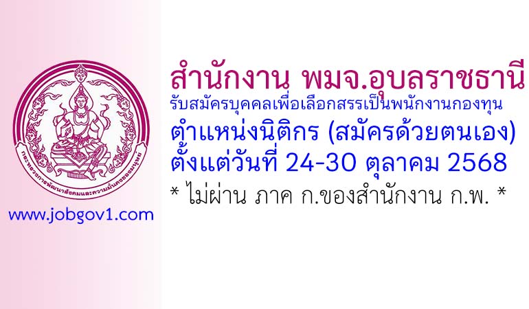สำนักงาน พมจ.อุบลราชธานี รับสมัครบุคคลเพื่อเลือกสรรเป็นพนักงานกองทุน ตำแหน่งนิติกร ตั้งแต่วันที่ 24-30 ตุลาคม 2568