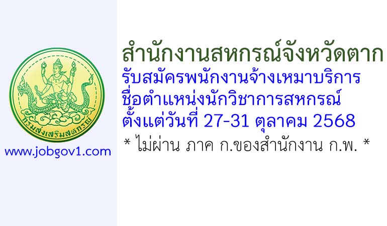 สำนักงานสหกรณ์จังหวัดตาก รับสมัครพนักงานจ้างเหมาบริการ ตำแหน่งนักวิชาการสหกรณ์ ตั้งแต่วันที่ 27-31 ตุลาคม 2568