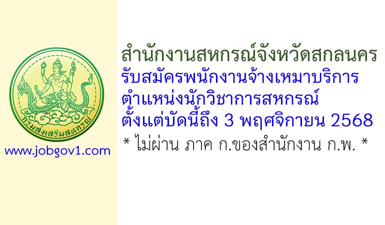 สำนักงานสหกรณ์จังหวัดสกลนคร รับสมัครพนักงานจ้างเหมาบริการ ตำแหน่งนักวิชาการสหกรณ์ ตั้งแต่บัดนี้ถึง 3 พฤศจิกายน 2568