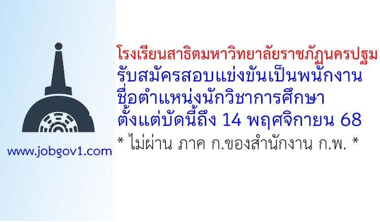 โรงเรียนสาธิตมหาวิทยาลัยราชภัฏนครปฐม รับสมัครสอบแข่งขันเป็นพนักงาน ตำแหน่งนักวิชาการศึกษา ตั้งแต่บัดนี้ถึง 14 พฤศจิกายน 2568