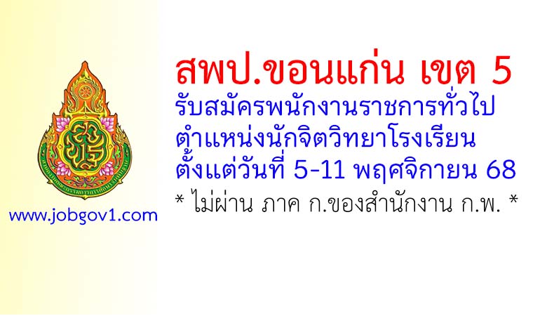 สพป.ขอนแก่น เขต 5 รับสมัครพนักงานราชการทั่วไป ตำแหน่งนักจิตวิทยาโรงเรียน ตั้งแต่วันที่ 5-11 พฤศจิกายน 2568