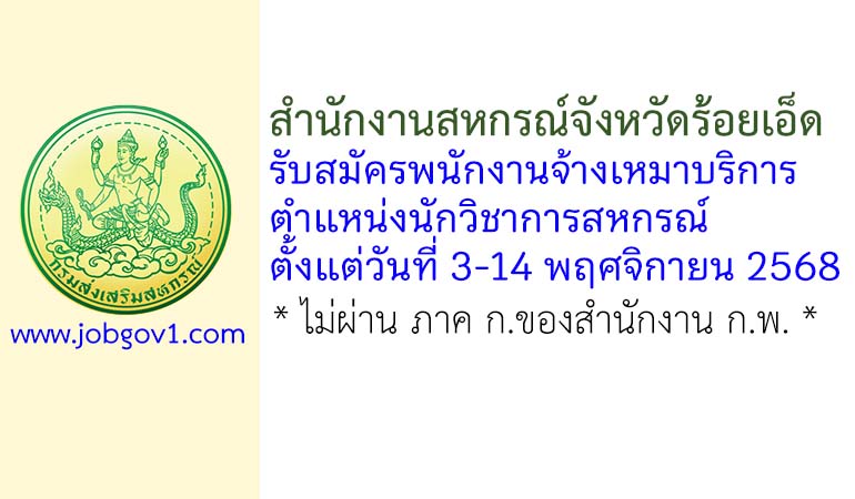 สำนักงานสหกรณ์จังหวัดร้อยเอ็ด รับสมัครพนักงานจ้างเหมาบริการ ตำแหน่งนักวิชาการสหกรณ์ ตั้งแต่วันที่ 3-14 พฤศจิกายน 2568