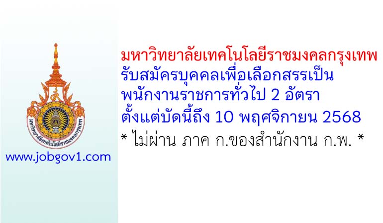 มหาวิทยาลัยเทคโนโลยีราชมงคลกรุงเทพ รับสมัครบุคคลเพื่อเลือกสรรเป็นพนักงานราชการทั่วไป 2 อัตรา ตั้งแต่บัดนี้ถึง 10 พฤศจิกายน 2568