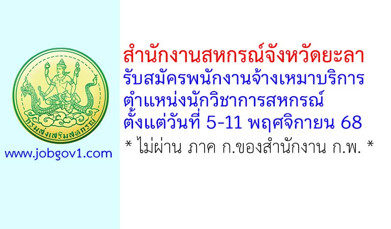 สำนักงานสหกรณ์จังหวัดยะลา รับสมัครพนักงานจ้างเหมาบริการ ตำแหน่งนักวิชาการสหกรณ์ ตั้งแต่วันที่ 5-11 พฤศจิกายน 2568