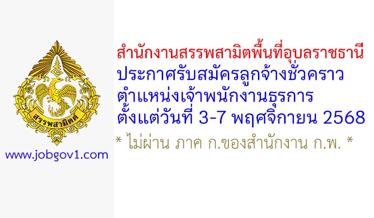 สำนักงานสรรพสามิตพื้นที่อุบลราชธานี รับสมัครลูกจ้างชั่วคราว ตำแหน่งเจ้าพนักงานธุรการ ตั้งแต่วันที่ 3-7 พฤศจิกายน 2568