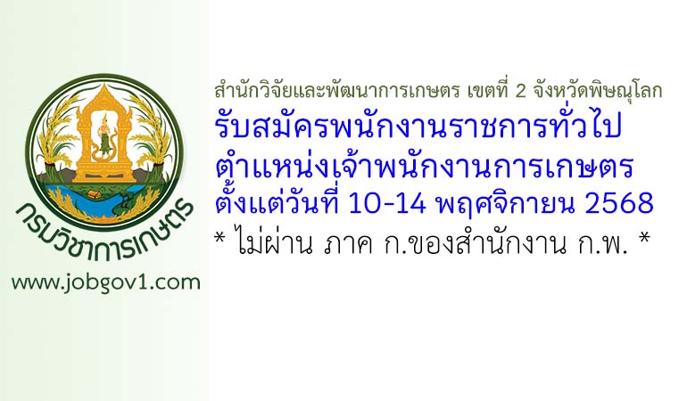 สำนักวิจัยและพัฒนาการเกษตร เขตที่ 2 จังหวัดพิษณุโลก รับสมัครพนักงานราชการทั่วไป ตำแหน่งเจ้าพนักงานการเกษตร ตั้งแต่วันที่ 10-14 พฤศจิกายน 2568