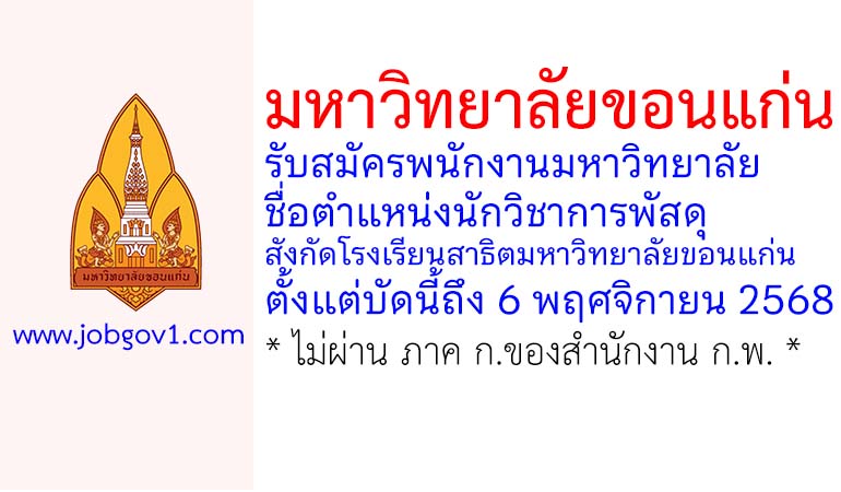 มหาวิทยาลัยขอนแก่น รับสมัครพนักงานมหาวิทยาลัย ตำแหน่งนักวิชาการพัสดุ สังกัดโรงเรียนสาธิตมหาวิทยาลัยขอนแก่น ตั้งแต่บัดนี้ถึง 6 พฤศจิกายน 2568