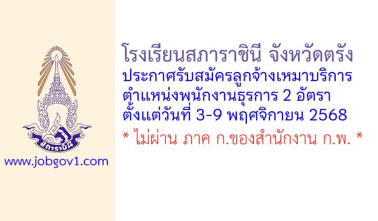 โรงเรียนสภาราชินี จังหวัดตรัง รับสมัครลูกจ้างเหมาบริการ ตำแหน่งพนักงานธุรการ 2 อัตรา ตั้งแต่วันที่ 3-9 พฤศจิกายน 2568