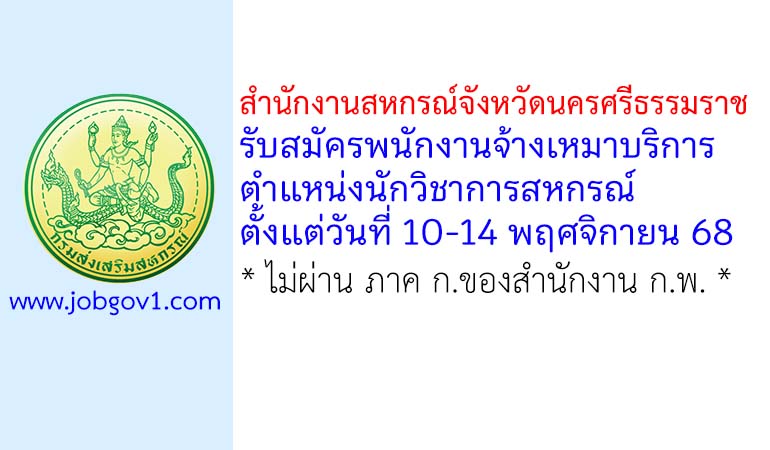 สำนักงานสหกรณ์จังหวัดนครศรีธรรมราช รับสมัครพนักงานจ้างเหมาบริการ ตำแหน่งนักวิชาการสหกรณ์ ตั้งแต่วันที่ 10-14 พฤศจิกายน 2568