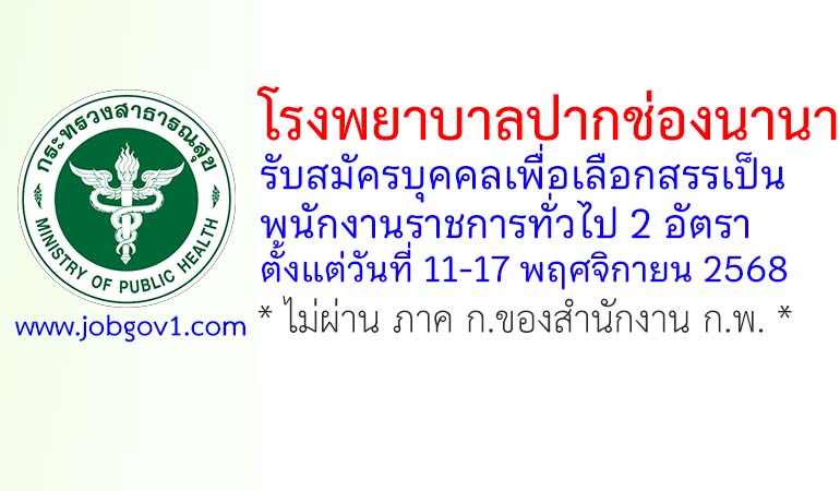 โรงพยาบาลปากช่องนานา รับสมัครบุคคลเพื่อเลือกสรรเป็นพนักงานราชการทั่วไป 2 อัตรา ตั้งแต่วันที่ 11-17 พฤศจิกายน 2568