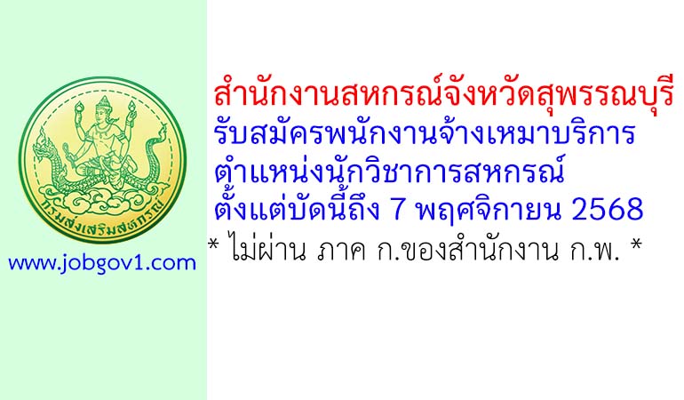 สำนักงานสหกรณ์จังหวัดสุพรรณบุรี รับสมัครพนักงานจ้างเหมาบริการ ตำแหน่งนักวิชาการสหกรณ์ ตั้งแต่บัดนี้ถึง 7 พฤศจิกายน 2568