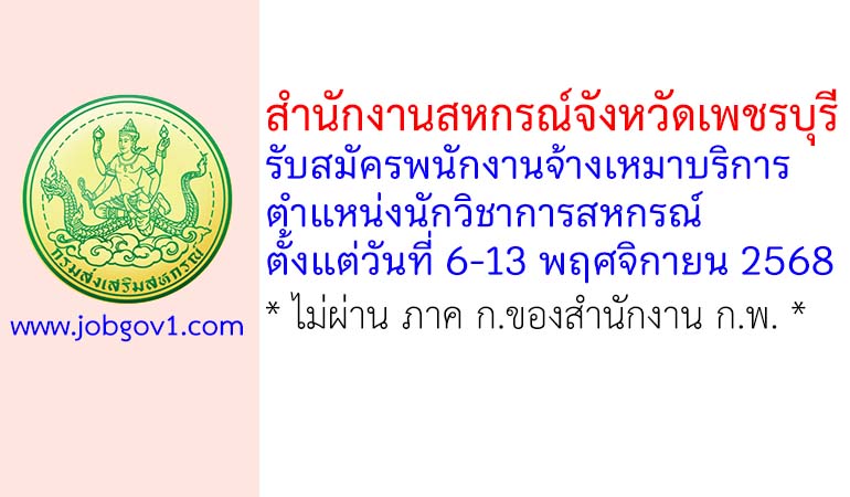 สำนักงานสหกรณ์จังหวัดเพชรบุรี รับสมัครพนักงานจ้างเหมาบริการ ตำแหน่งนักวิชาการสหกรณ์ ตั้งแต่วันที่ 6-13 พฤศจิกายน 2568