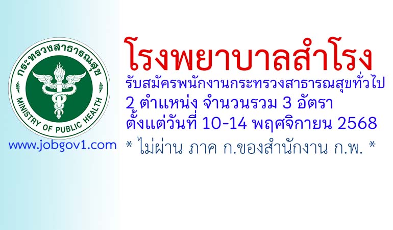โรงพยาบาลสำโรง รับสมัครพนักงานกระทรวงสาธารณสุขทั่วไป 3 อัตรา ตั้งแต่วันที่ 10-14 พฤศจิกายน 2568
