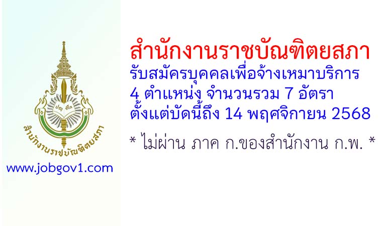 สำนักงานราชบัณฑิตยสภา รับสมัครบุคคลเพื่อจ้างเหมาบริการ 7 อัตรา ตั้งแต่บัดนี้ถึง 14 พฤศจิกายน 2568