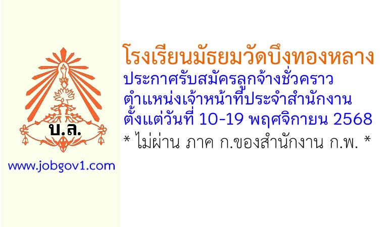 โรงเรียนมัธยมวัดบึงทองหลาง รับสมัครลูกจ้างชั่วคราว ตำแหน่งเจ้าหน้าที่ประจำสำนักงาน ตั้งแต่วันที่ 10-19 พฤศจิกายน 2568