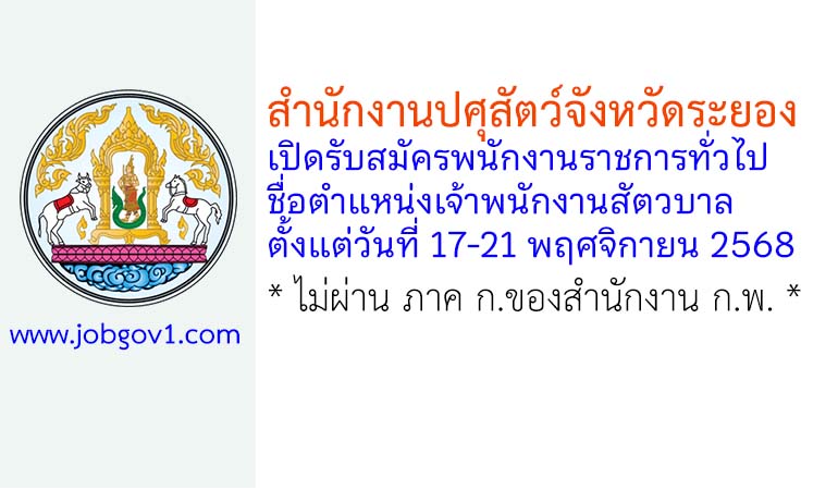 ประกาศจังหวัดระยอง เรื่อง รับสมัครบุคคลเพื่อเลือกสรรเป็นพนักงานราชการทั่วไป ตำแหน่งเจ้าพนักงานสัตวบาล