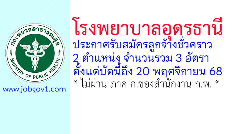 โรงพยาบาลอุดรธานี รับสมัครลูกจ้างชั่วคราว 3 อัตรา ตั้งแต่บัดนี้ถึง 20 พฤศจิกายน 2568