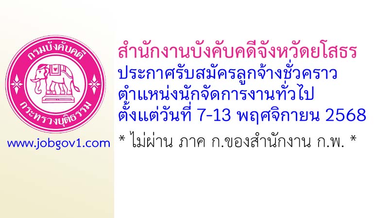 สำนักงานบังคับคดีจังหวัดยโสธร รับสมัครลูกจ้างชั่วคราว ตำแหน่งนักจัดการงานทั่วไป ตั้งแต่วันที่ 7-13 พฤศจิกายน 2568