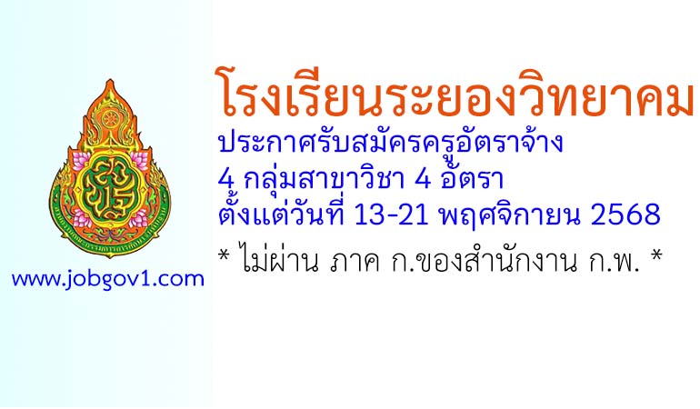 โรงเรียนระยองวิทยาคม รับสมัครครูอัตราจ้าง 4 อัตรา ตั้งแต่วันที่ 13-21 พฤศจิกายน 2568