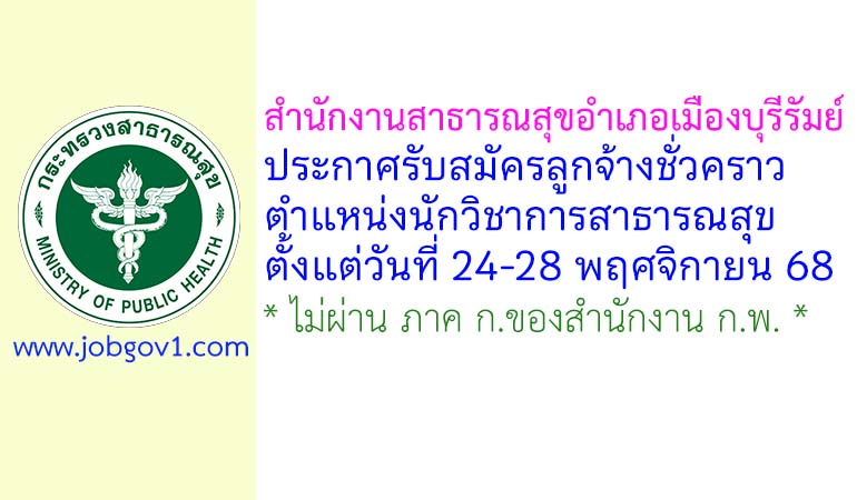 สำนักงานสาธารณสุขอำเภอเมืองบุรีรัมย์ รับสมัครลูกจ้างชั่วคราว ตำแหน่งนักวิชาการสาธารณสุข ตั้งแต่วันที่ 24-28 พฤศจิกายน 2568