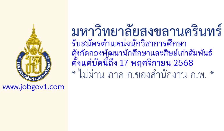 มหาวิทยาลัยสงขลานครินทร์ รับสมัครนักวิชาการศึกษา สังกัดกองพัฒนานักศึกษาและศิษย์เก่าสัมพันธ์ ตั้งแต่บัดนี้ถึง 17 พฤศจิกายน 2568