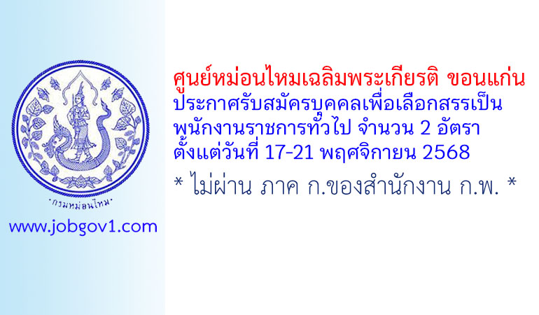 ศูนย์หม่อนไหมเฉลิมพระเกียรติ ขอนแก่น รับสมัครบุคคลเพื่อเลือกสรรเป็นพนักงานราชการทั่วไป 2 อัตรา ตั้งแต่วันที่ 17-21 พฤศจิกายน 2568