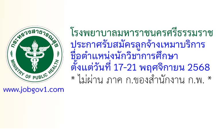 โรงพยาบาลมหาราชนครศรีธรรมราช รับสมัครลูกจ้างเหมาบริการ ตำแหน่งนักวิชาการศึกษา ตั้งแต่วันที่ 17-21 พฤศจิกายน 2568