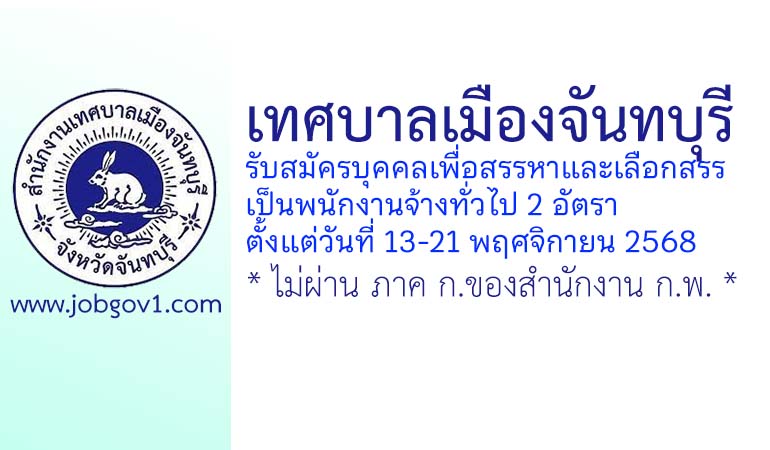 เทศบาลเมืองจันทบุรี รับสมัครบุคคลเพื่อสรรหาและเลือกสรรเป็นพนักงานจ้างทั่วไป 2 อัตรา ตั้งแต่วันที่ 13-21 พฤศจิกายน 2568