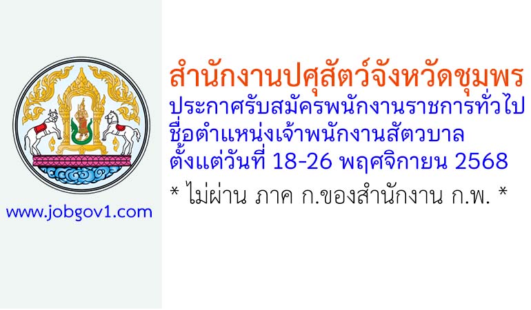 สำนักงานปศุสัตว์จังหวัดชุมพร รับสมัครพนักงานราชการทั่วไป ตำแหน่งเจ้าพนักงานสัตวบาล ตั้งแต่วันที่ 18-26 พฤศจิกายน 2568