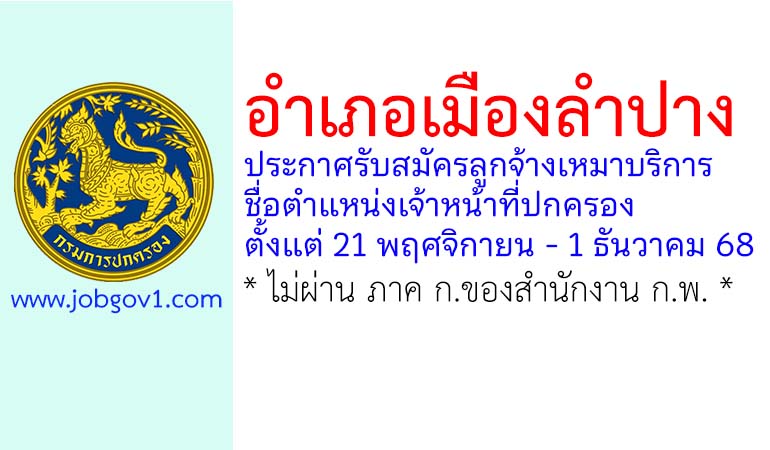 อำเภอเมืองลำปาง รับสมัครลูกจ้างเหมาบริการ ตำแหน่งเจ้าหน้าที่ปกครอง ตั้งแต่ 21 พฤศจิกายน – 1 ธันวาคม 2568