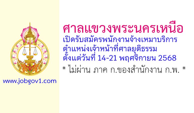 ศาลแขวงพระนครเหนือ รับสมัครพนักงานจ้างเหมาบริการ ตำแหน่งเจ้าหน้าที่ศาลยุติธรรม ตั้งแต่วันที่ 14-21 พฤศจิกายน 2568