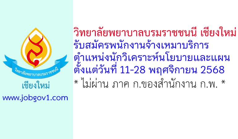 วิทยาลัยพยาบาลบรมราชชนนี เชียงใหม่ รับสมัครพนักงานจ้างเหมาบริการ ตำแหน่งนักวิเคราะห์นโยบายและแผน ตั้งแต่วันที่ 11-28 พฤศจิกายน 2568