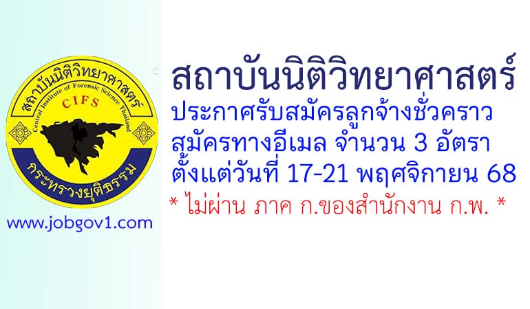 สถาบันนิติวิทยาศาสตร์ รับสมัครบุคคลเพื่อเลือกสรรเป็นลูกจ้างชั่วคราว 3 อัตรา ตั้งแต่วันที่ 17-21 พฤศจิกายน 2568
