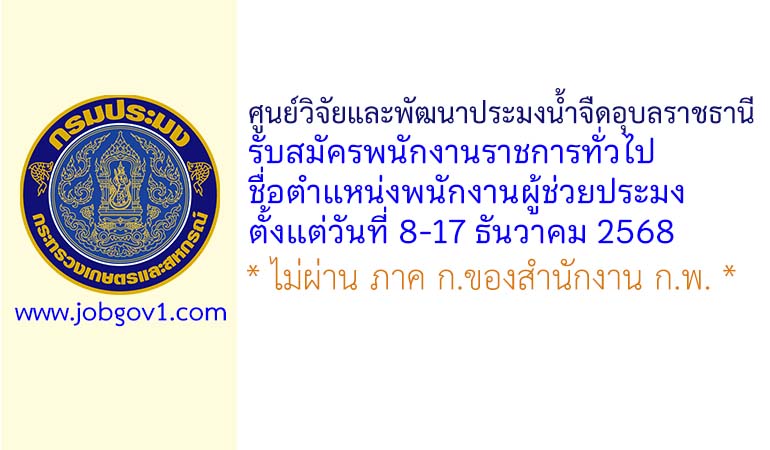 ศูนย์วิจัยและพัฒนาประมงน้ำจืดอุบลราชธานี รับสมัครพนักงานราชการทั่วไป ตำแหน่งพนักงานผู้ช่วยประมง ตั้งแต่วันที่ 8-17 ธันวาคม 2568