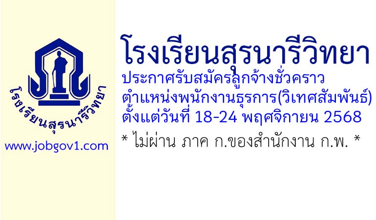 โรงเรียนสุรนารีวิทยา รับสมัครลูกจ้างชั่วคราว ตำแหน่งพนักงานธุรการ(วิเทศสัมพันธ์) ตั้งแต่วันที่ 18-24 พฤศจิกายน 2568