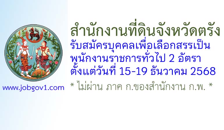 สำนักงานที่ดินจังหวัดตรัง รับสมัครบุคคลเพื่อเลือกสรรเป็นพนักงานราชการทั่วไป 2 อัตรา ตั้งแต่วันที่ 15-19 ธันวาคม 2568