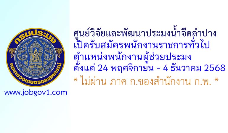 ศูนย์วิจัยและพัฒนาประมงน้ำจืดลำปาง รับสมัครพนักงานราชการทั่วไป ตำแหน่งพนักงานผู้ช่วยประมง ตั้งแต่ 24 พฤศจิกายน – 4 ธันวาคม 2568