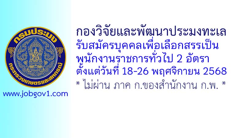 กองวิจัยและพัฒนาประมงทะเล รับสมัครบุคคลเพื่อเลือกสรรเป็นพนักงานราชการทั่วไป 2 อัตรา ตั้งแต่วันที่ 18-26 พฤศจิกายน 2568