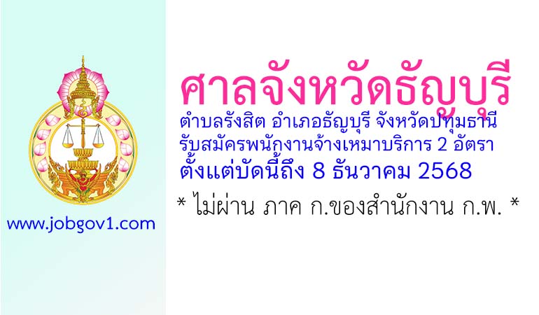 ศาลจังหวัดธัญบุรี รับสมัครพนักงานจ้างเหมาบริการ 2 อัตรา ตั้งแต่บัดนี้ถึง 8 ธันวาคม 2568