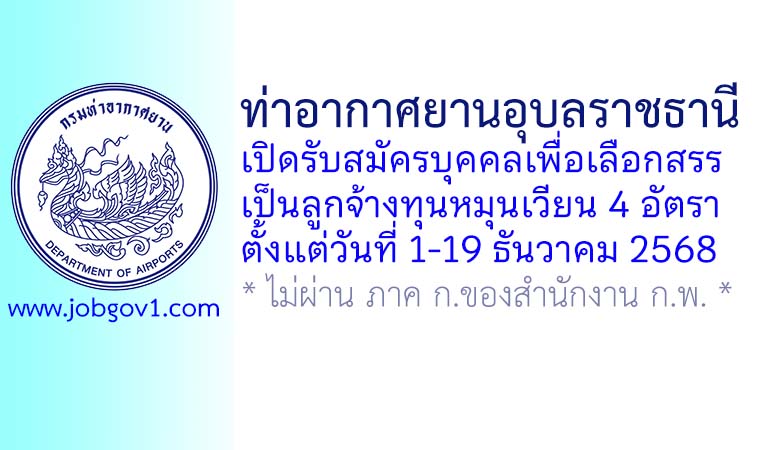 ท่าอากาศยานอุบลราชธานี รับสมัครบุคคลเพื่อเลือกสรรเป็นลูกจ้างทุนหมุนเวียน 5 อัตรา ตั้งแต่วันที่ 1-19 ธันวาคม 2568