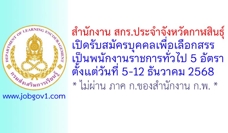 ประกาศสำนักงานส่งเสริมการเรียนรู้ประจำจังหวัดกาฬสินธุ์ เรื่อง รับสมัครบุคคลเพื่อสรรหาและเลือกสรรเป็นพนักงานราชการทั่วไป สังกัดสำนักงานส่งเสริมการเรียนรู้ประจำจังหวัดกาฬสินธุ์ ประจำปีงบประมาณ พ.ศ. 2569