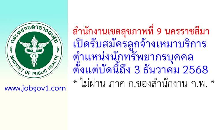 สำนักงานเขตสุขภาพที่ 9 นครราชสีมา รับสมัครลูกจ้างเหมาบริการ ตำแหน่งนักทรัพยากรบุคคล ตั้งแต่บัดนี้ถึง 3 ธันวาคม 2568