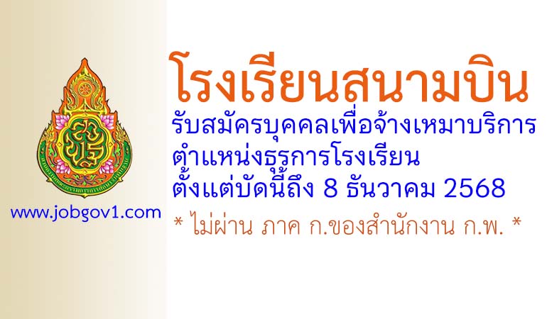 โรงเรียนสนามบิน รับสมัครบุคคลเพื่อจ้างเหมาบริการ ตำแหน่งธุรการโรงเรียน ตั้งแต่บัดนี้ถึง 8 ธันวาคม 2568
