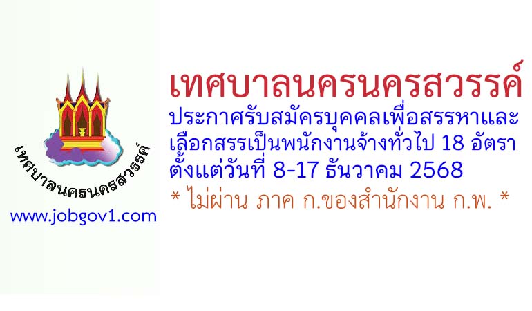 เทศบาลนครนครสวรรค์ รับสมัครบุคคลเพื่อสรรหาและเลือกสรรเป็นพนักงานจ้างทั่วไป 18 อัตรา ตั้งแต่วันที่ 8-17 ธันวาคม 2568
