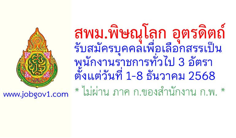 สพม.พิษณุโลก อุตรดิตถ์ รับสมัครบุคคลเพื่อเลือกสรรเป็นพนักงานราชการทั่วไป 3 อัตรา ตั้งแต่วันที่ 1-8 ธันวาคม 2568