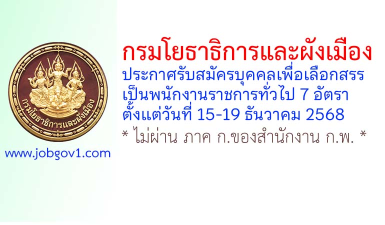 กรมโยธาธิการและผังเมือง รับสมัครบุคคลเพื่อเลือกสรรเป็นพนักงานราชการทั่วไป 7 อัตรา ตั้งแต่วันที่ 15-19 ธันวาคม 2568